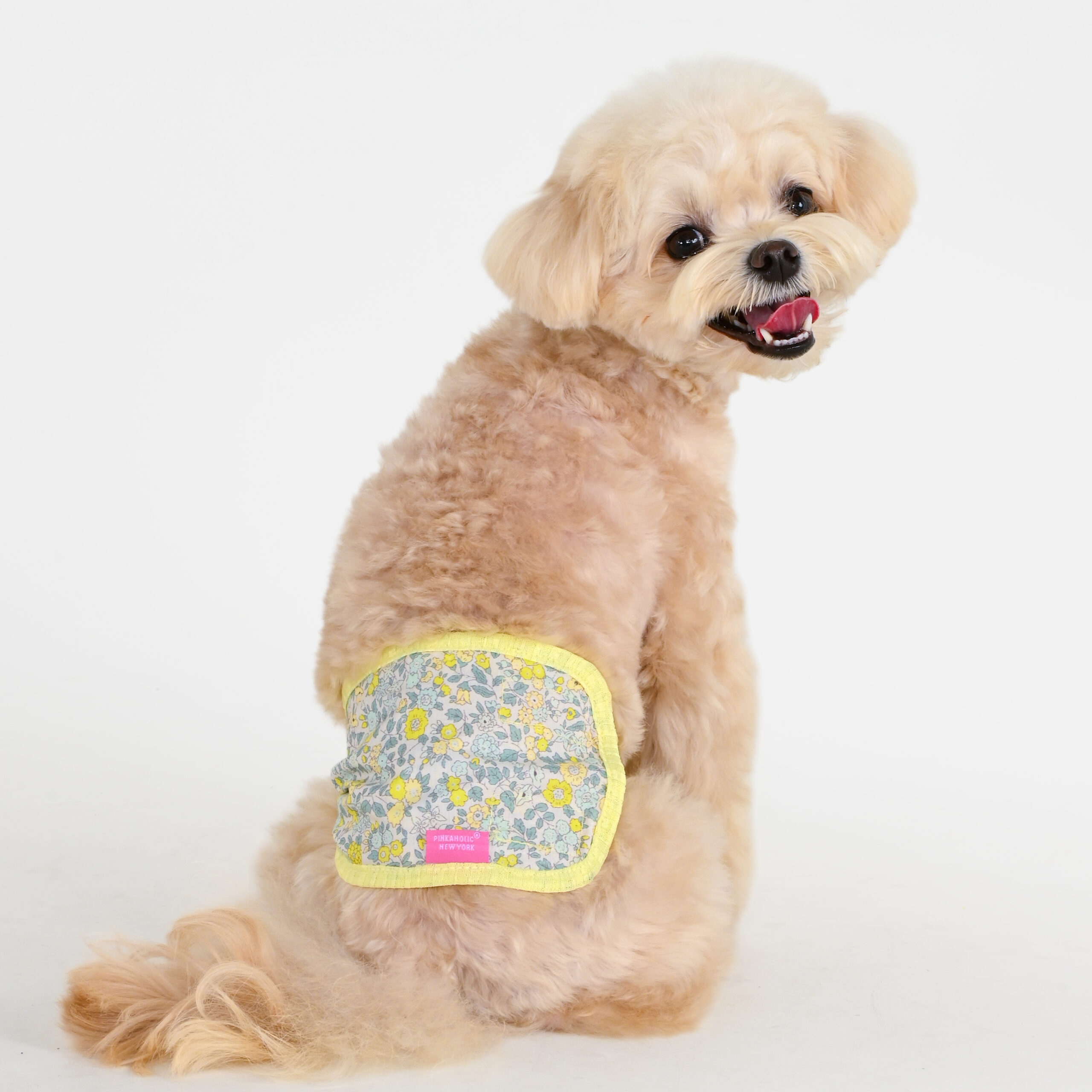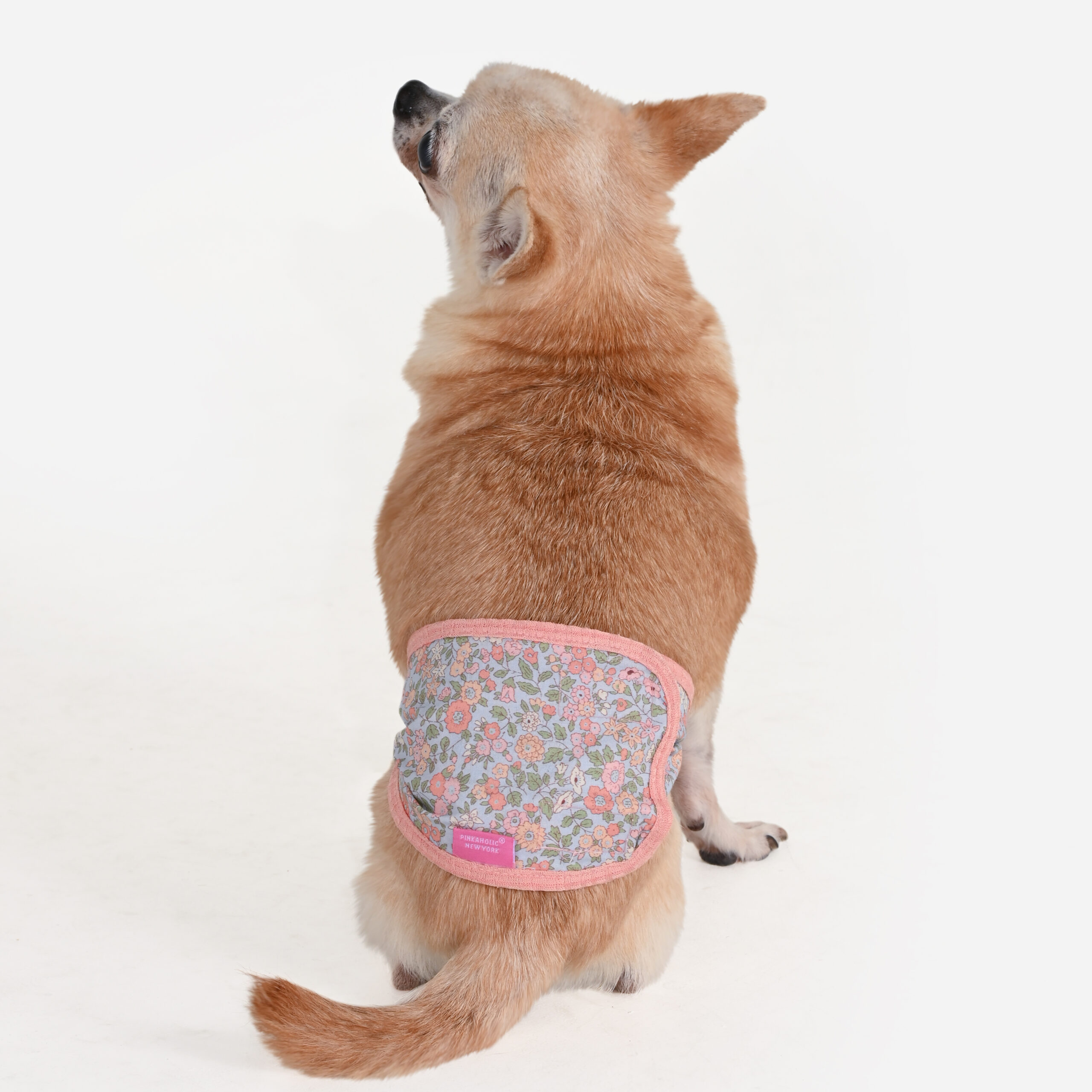 Matching manner band for BLOSSOMY series, Decorated with pastel flower pattern fabric, Soft elastic band for comfortable wearing, Lined with absorbent inner layer for practical use, Lovely and feminine Pinkaholic mood