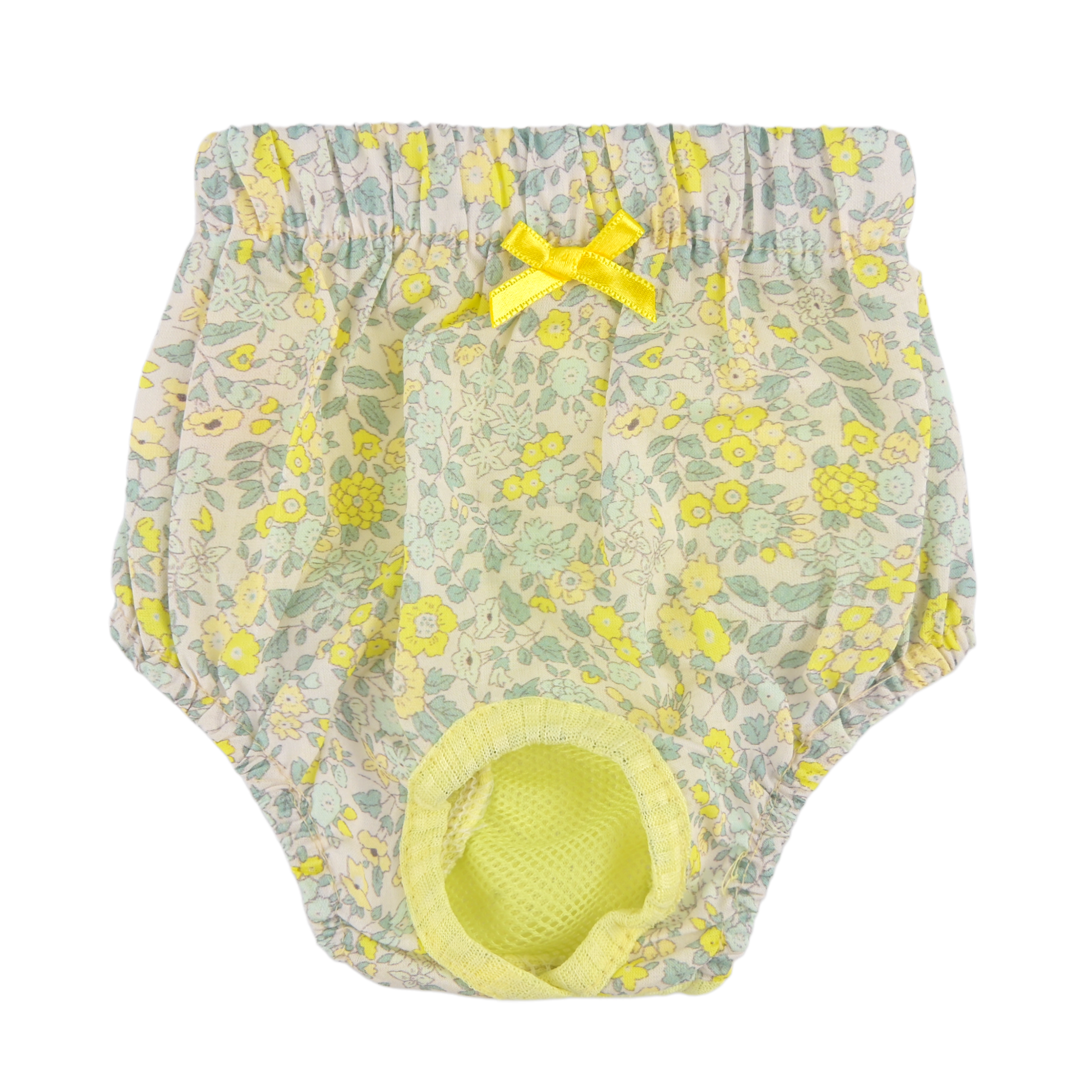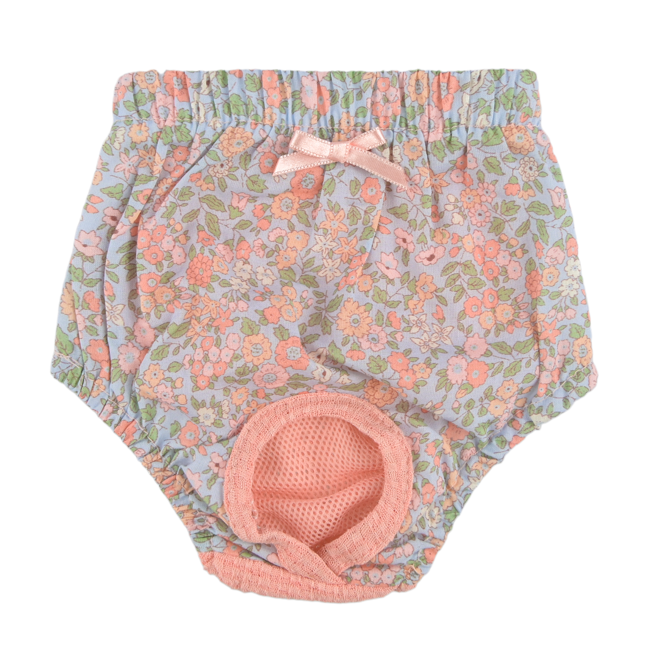 Matching sanitary panties for BLOSSOMY series, Decorated with pastel flower pattern fabric, Finished with lace trimming and ribbon detail, Elastic waistband for a comfortable fit, Lovely and feminine Pinkaholic mood