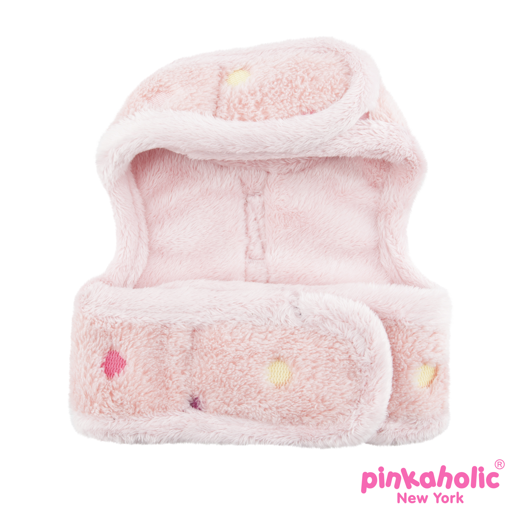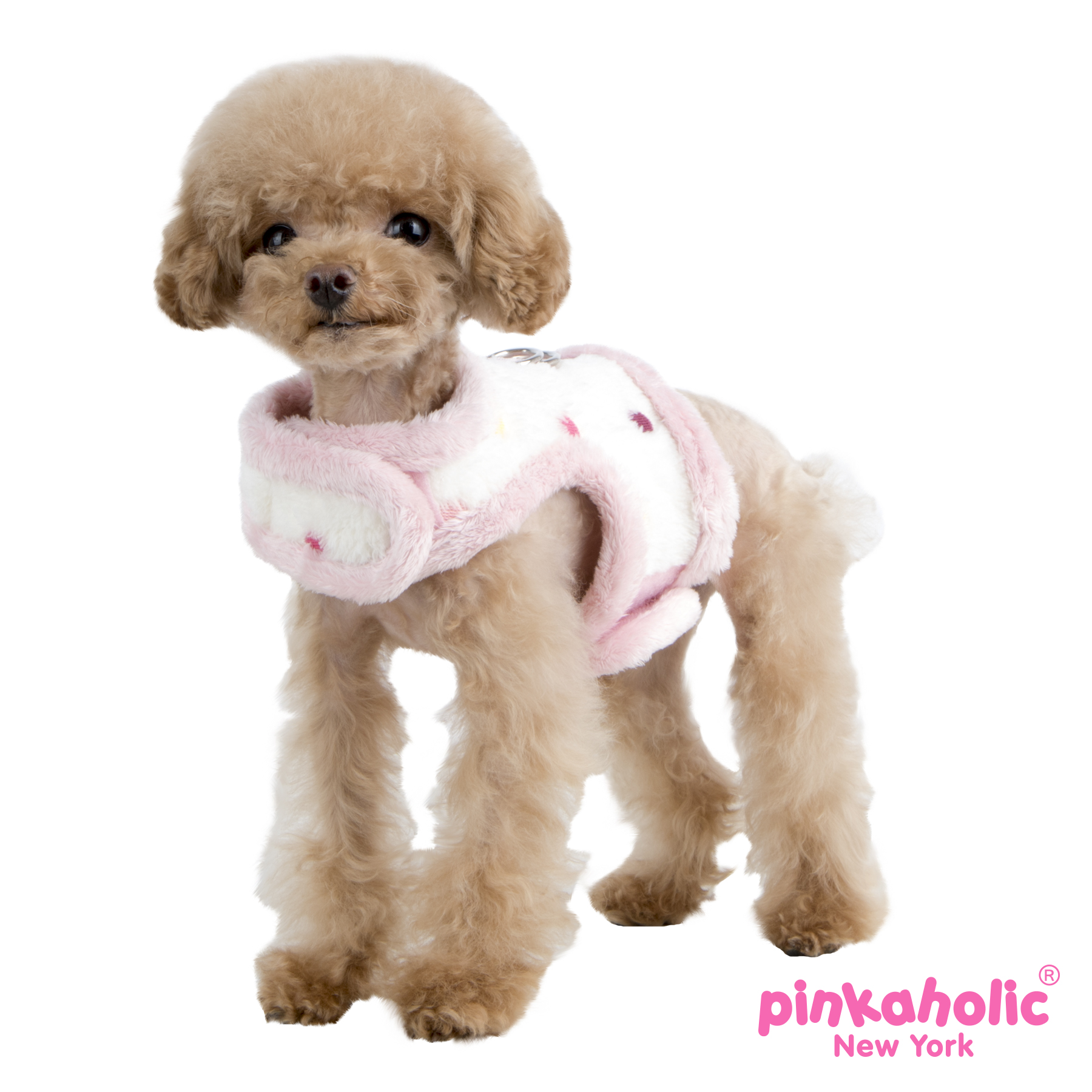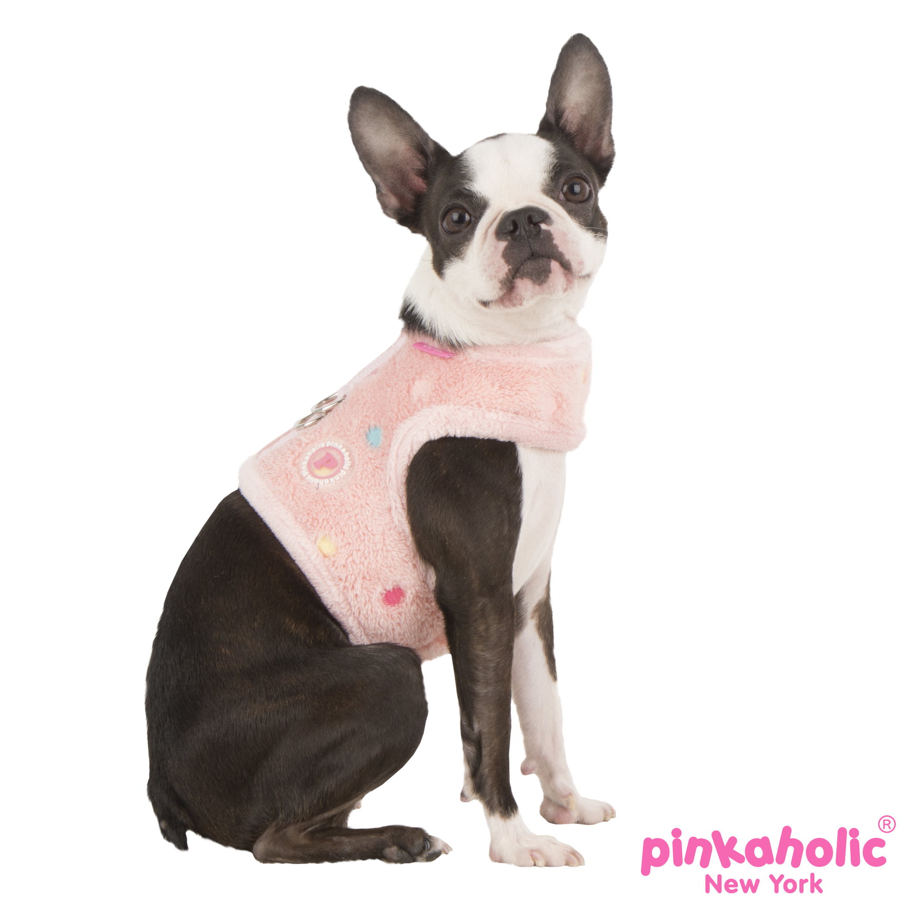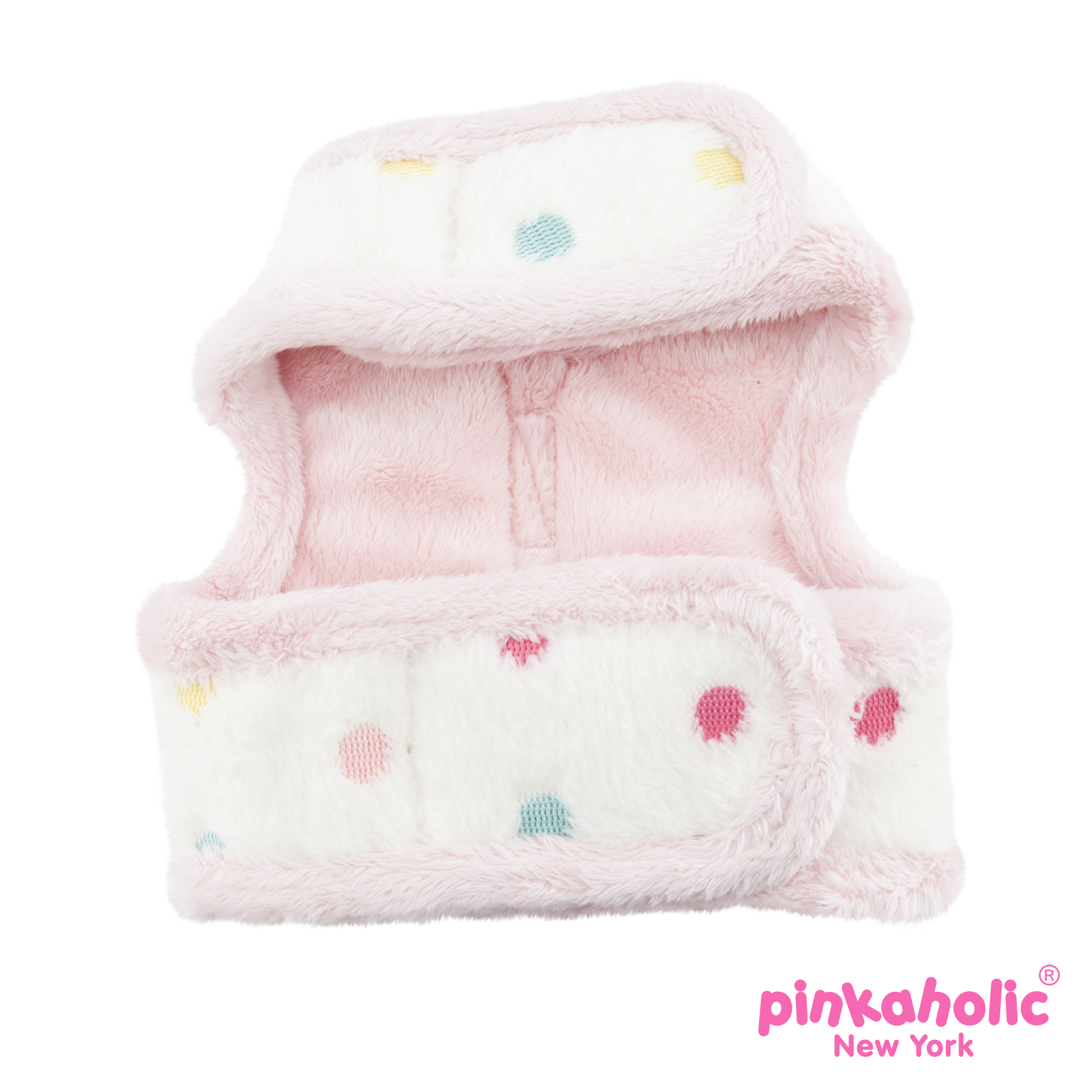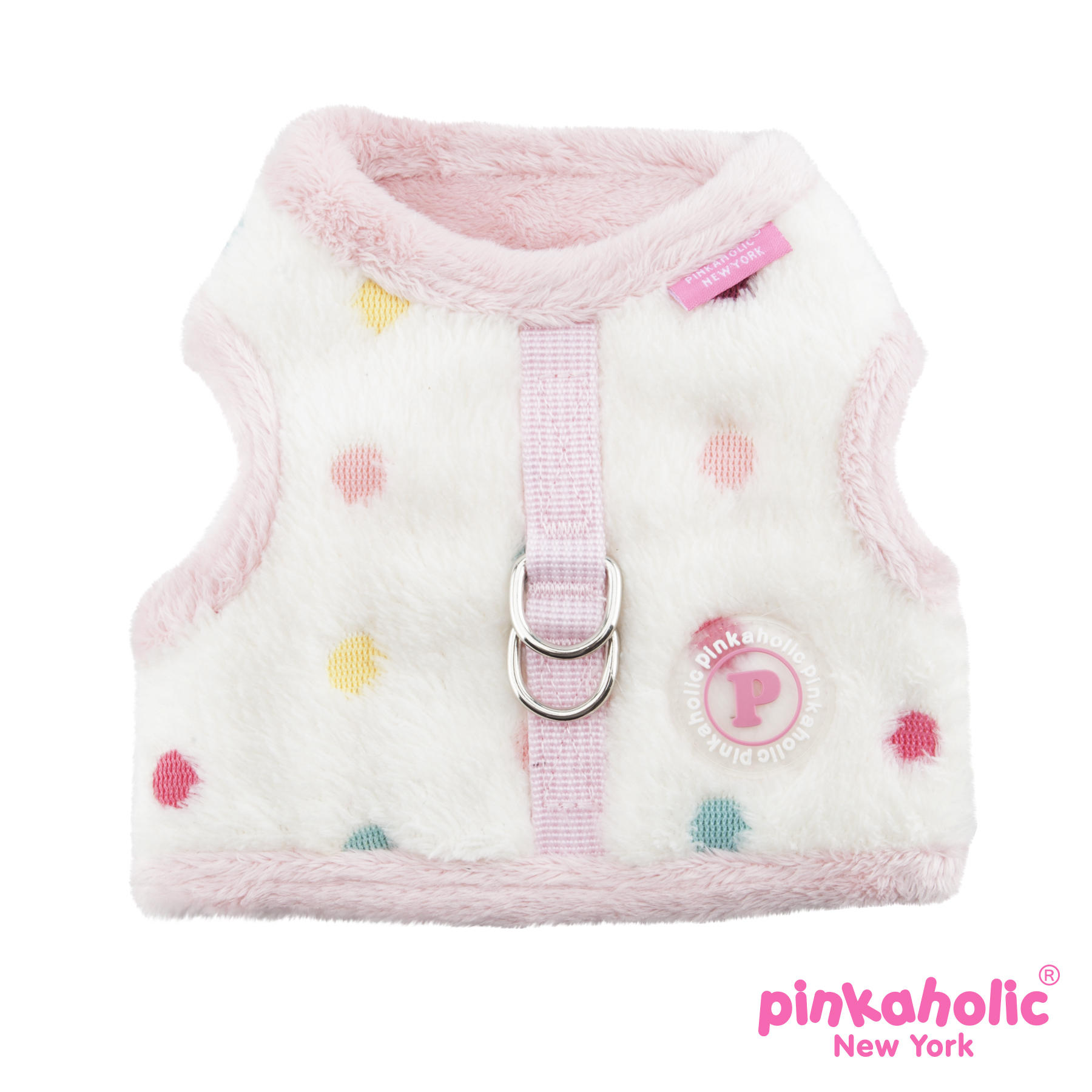 Beautiful and safe Pinkaholic harness, with colorful polka dot pattern, adjustable collar and chest. Decorated with Pinkaholic label. Made of 100% polyester