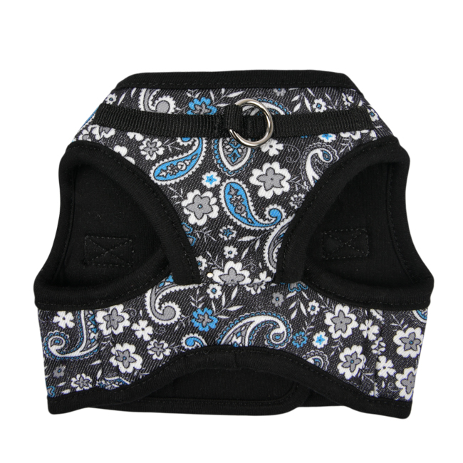 Step-In Harness Harness B, Front D-Ring for no pull purposes, Paisley pattern and solid schemed, Buckle & Hook-and-loop fastener