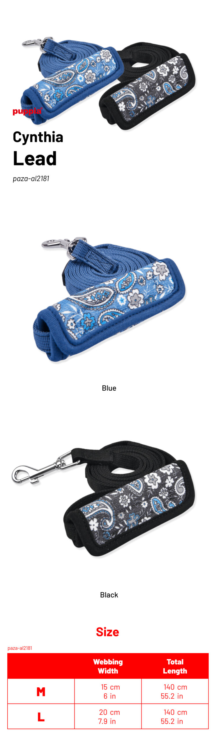 Safe and fashionable Puppia leash with paisley pattern. Can be combined with harnesses A/B/H