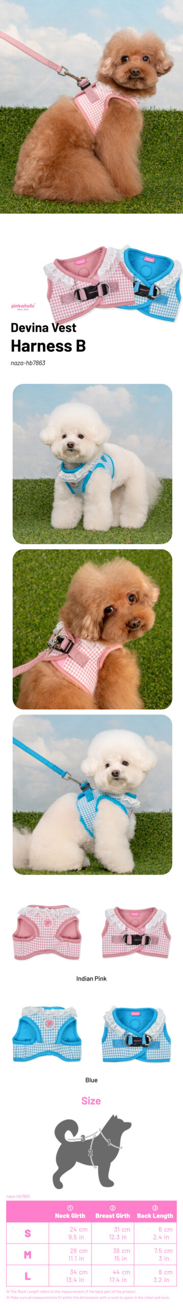 Step-In harness Harness B, Houndstooth pattern and solid schemed, Decorated with ruffle on the neck, Buckle & Hook-and-loop fastener, Coordinated with NAZA-AL7863