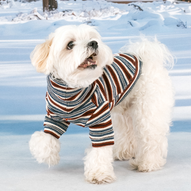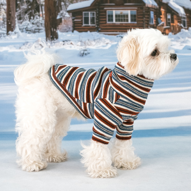 Winter turtleneck, Striped pattern and solid schemed, Comes ready with a leash hole