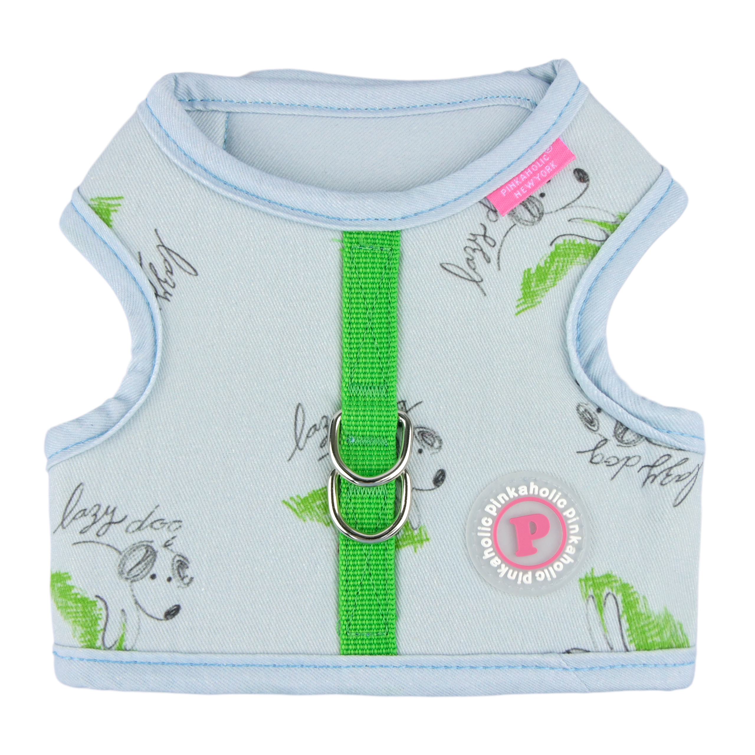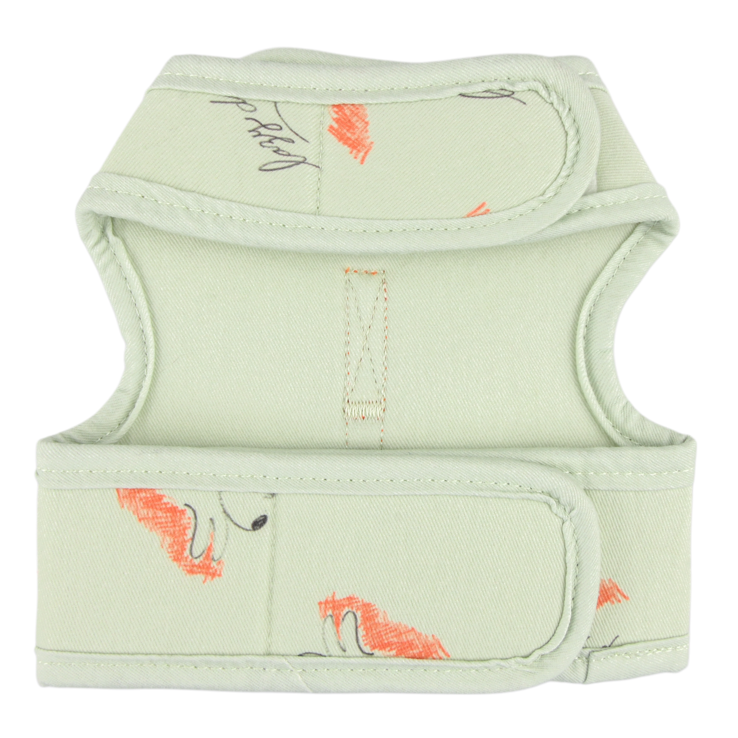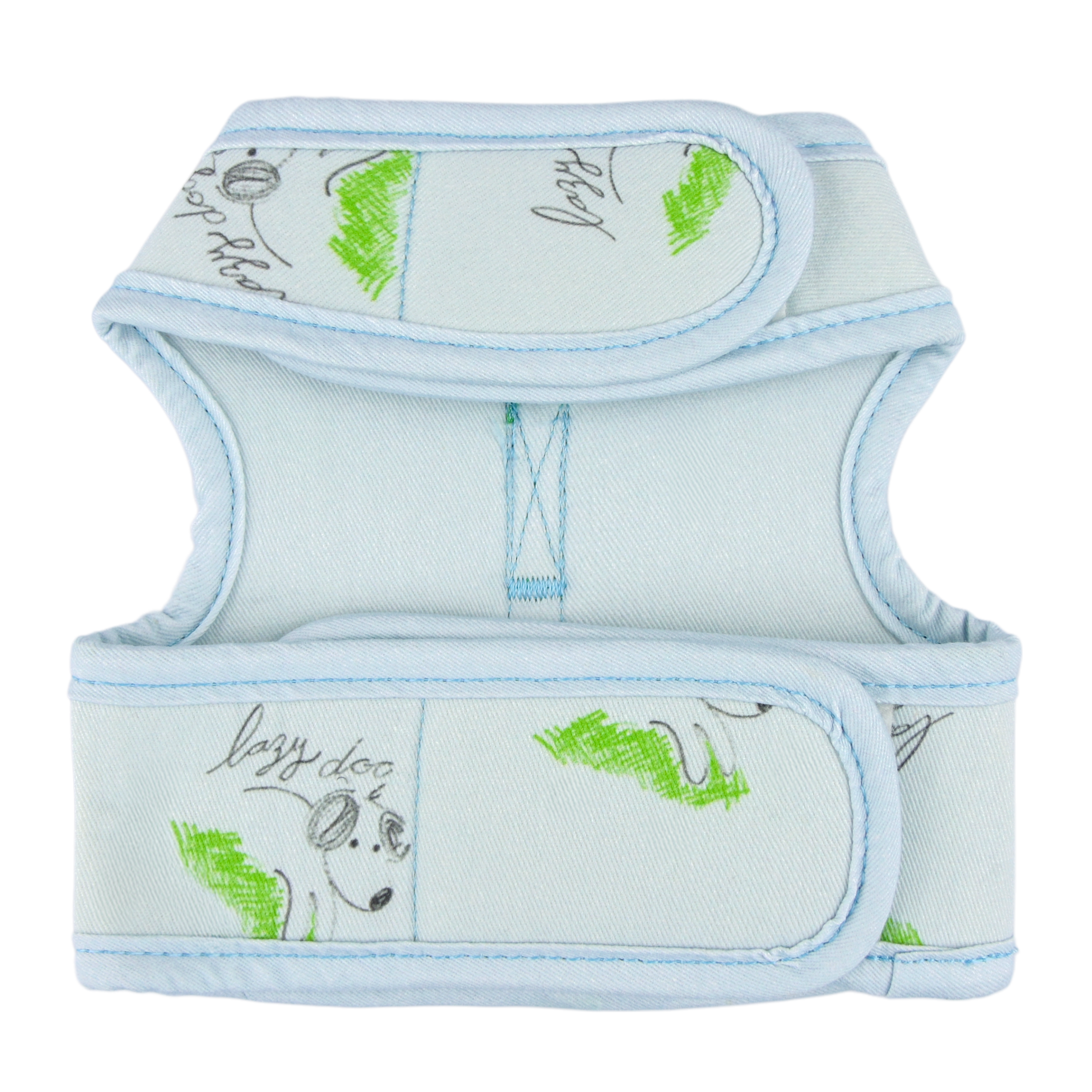 Jacket harness as Harness J, Dog pattern and solid schemed, Hook and loop fasteners for neck and chest