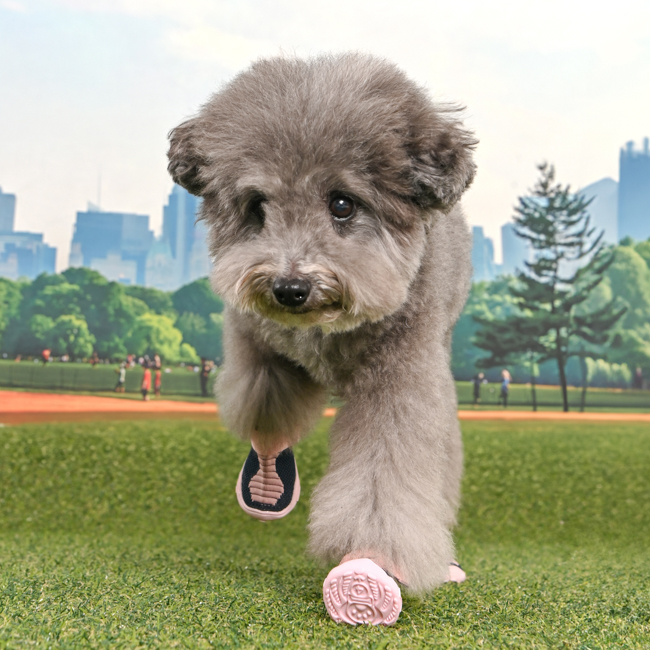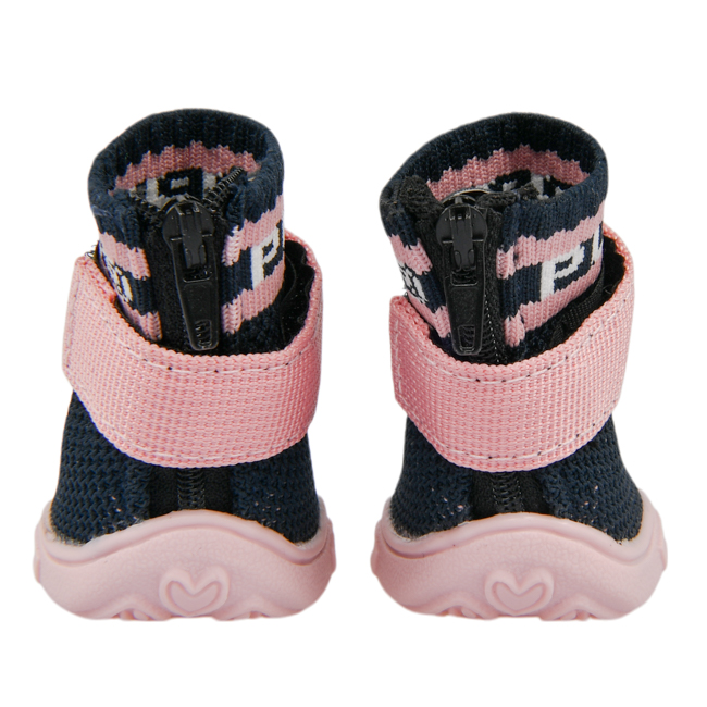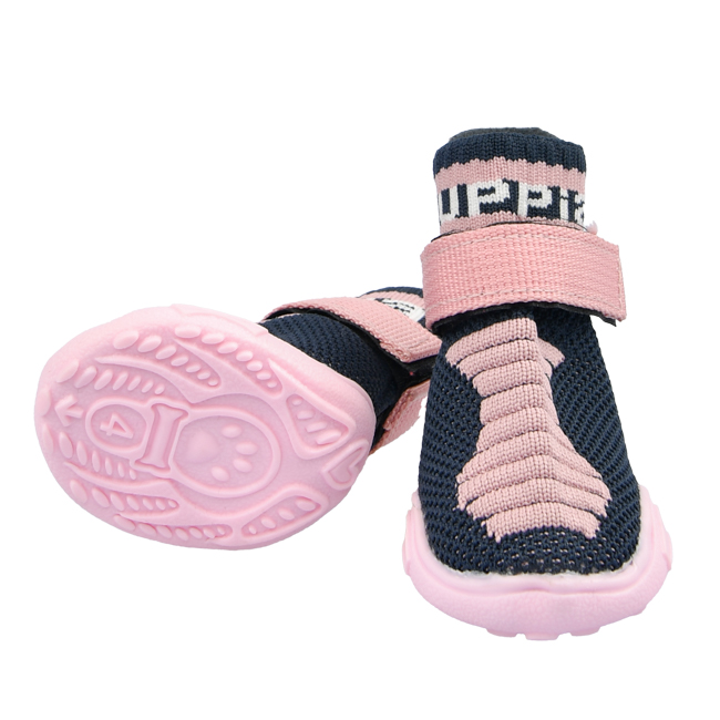 Soft and stretchy knit material comfortably wraps around the paws, Velcro strap for secure ankle fastening, Anti-slip bottom on the sole for added grip