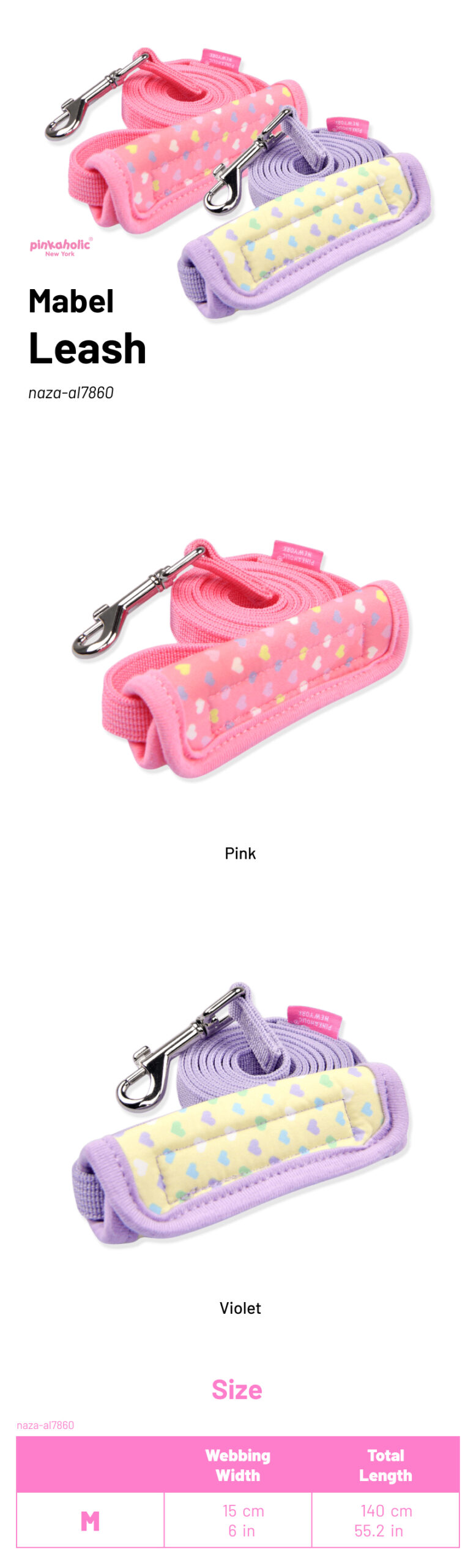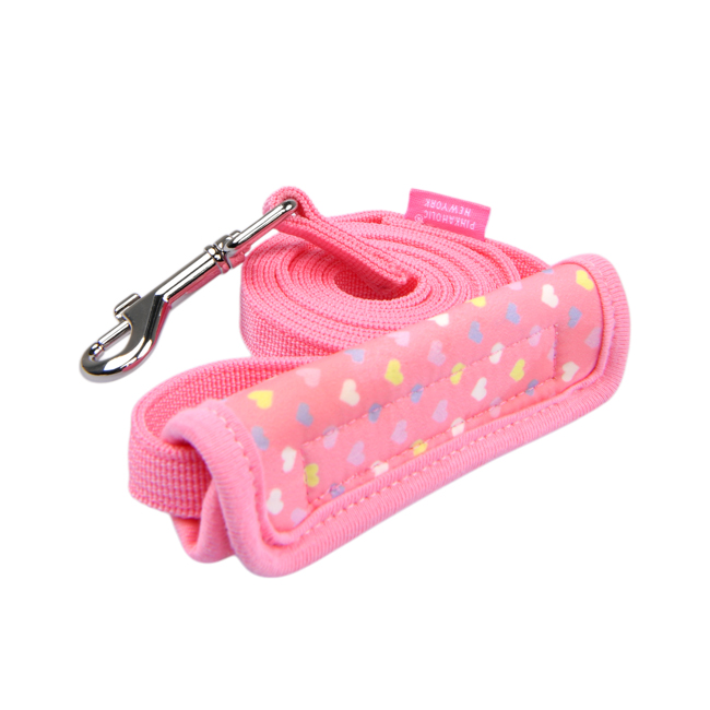 Safe and fashionable Pinkaholic leash with heart pattern and solid color. Can be combined with J harnesses
