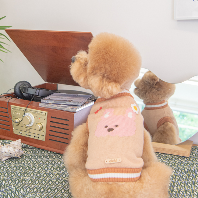 Sleeveless knit, Unique animal design weaved on the back. Olchi logo tag on the back