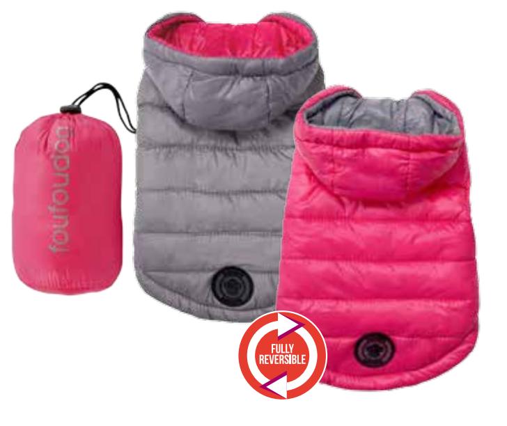 Reversible Puffer Coat with Travel Pouch Pink/Grey