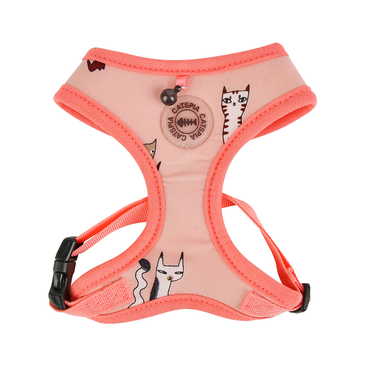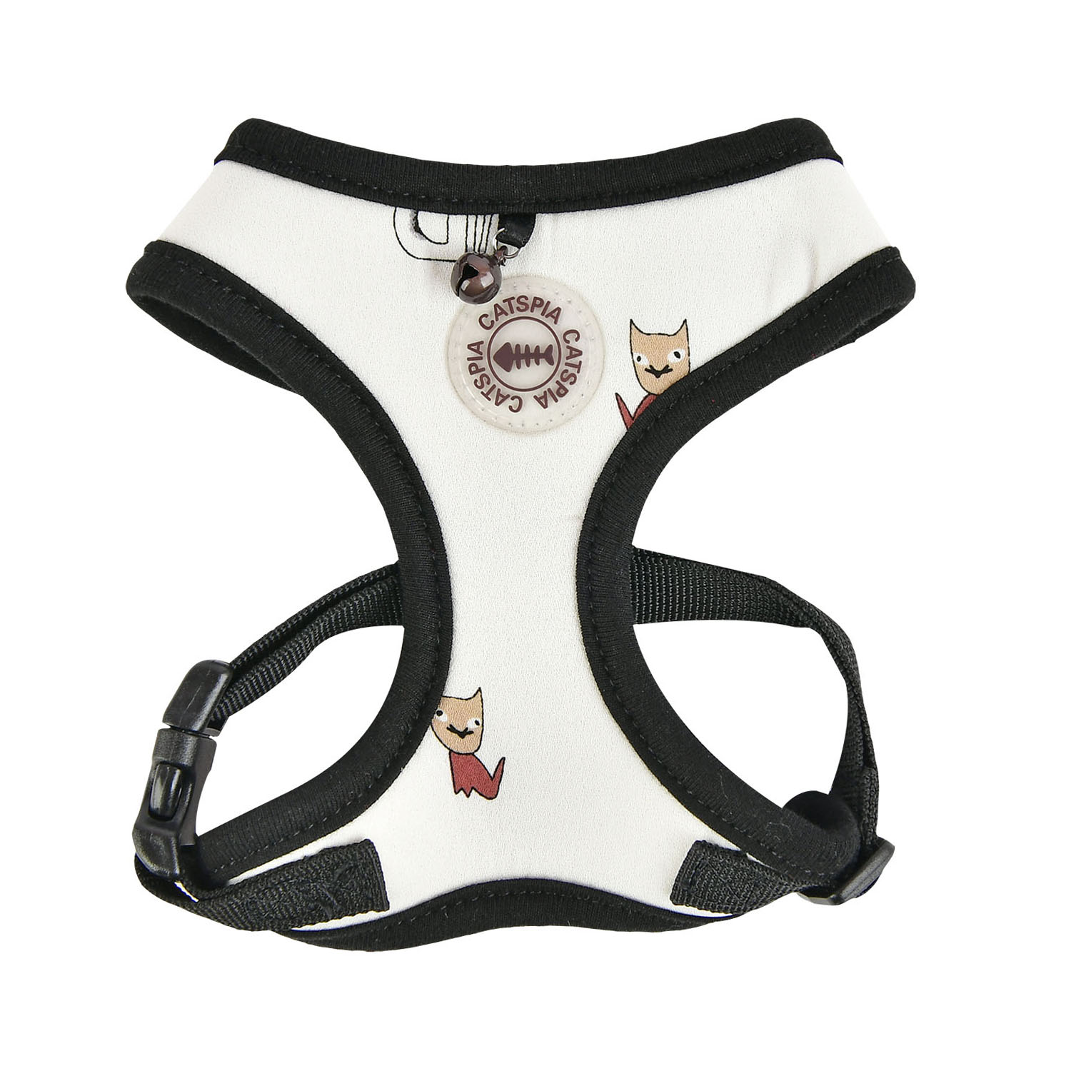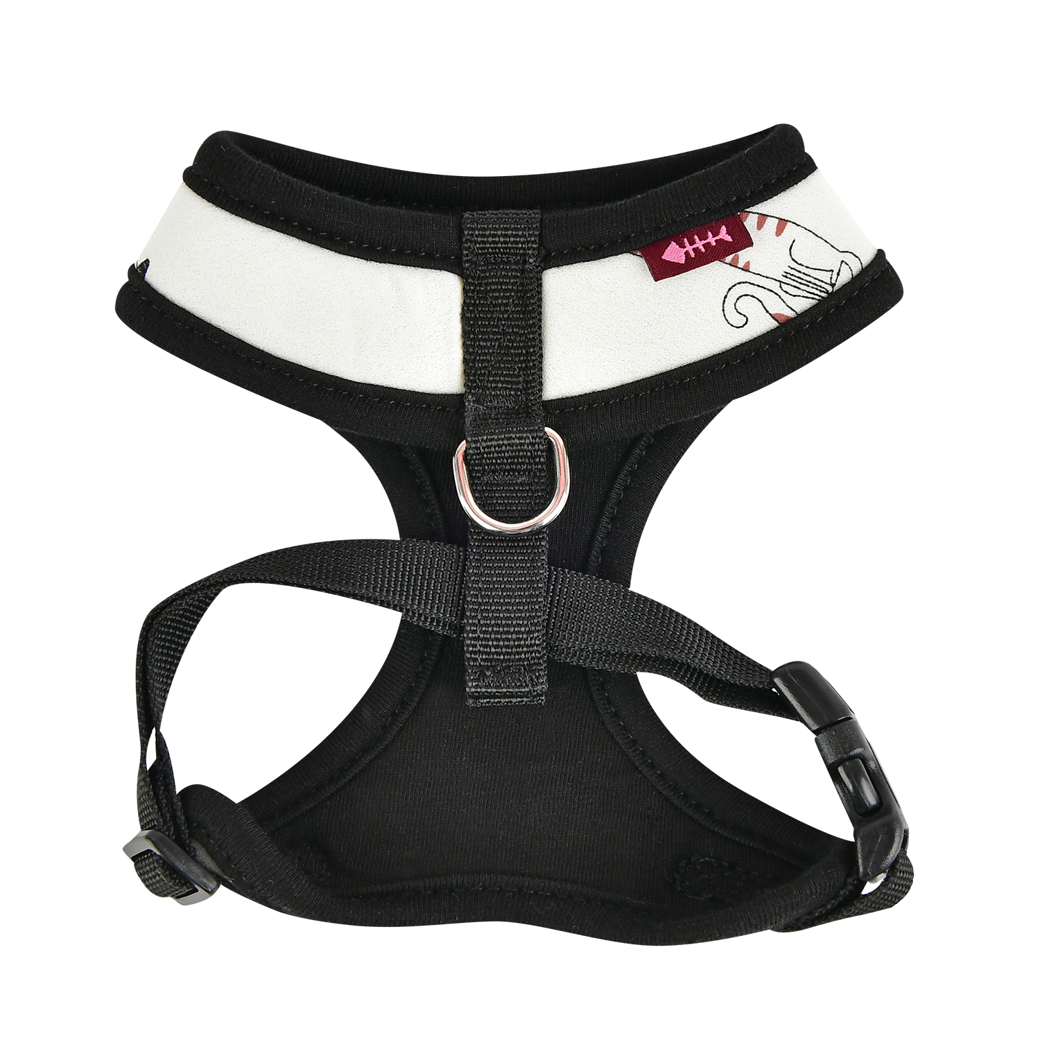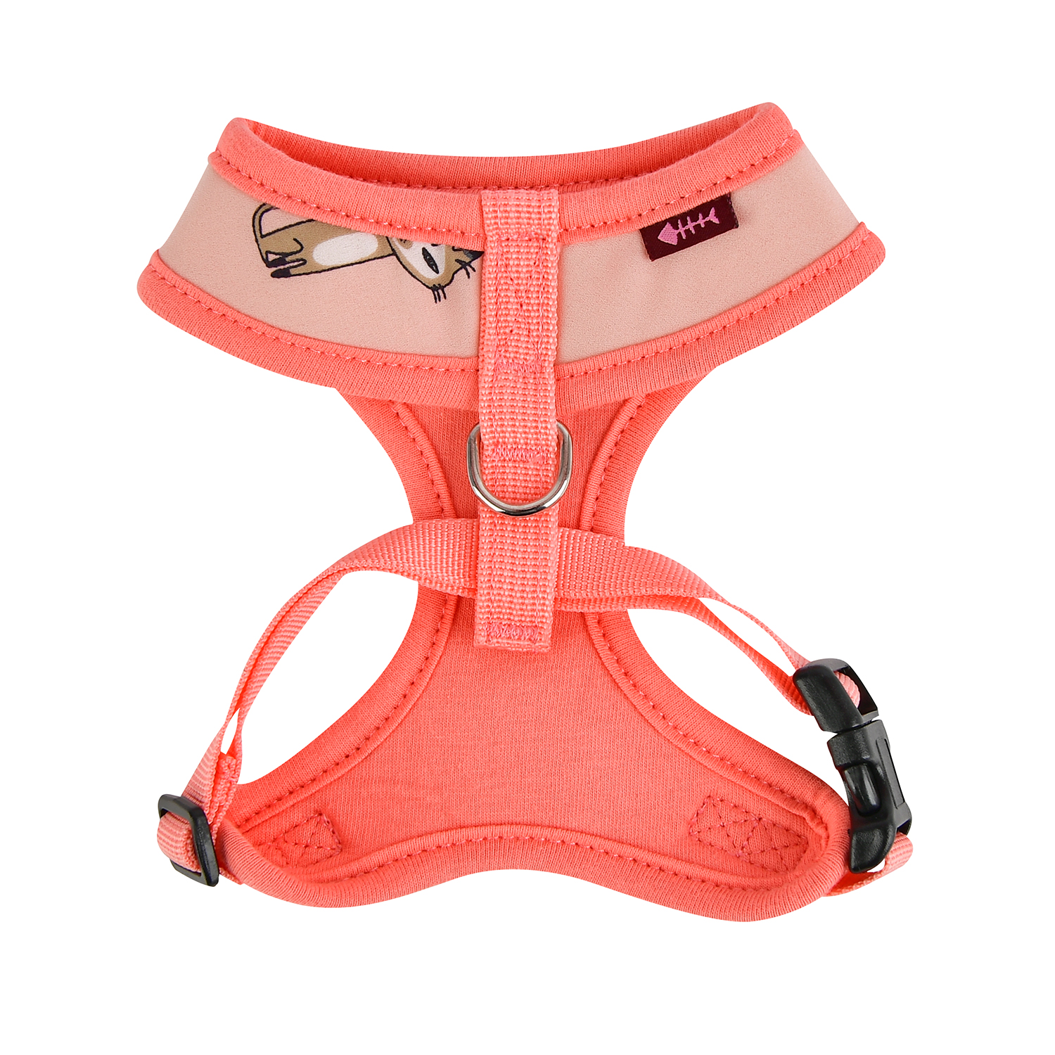 Pettorina modello A sicura e alla moda con motivo a gattini e cintura toracica regolabile. Esterno: poliestere 100% – Interno: cotone 100%