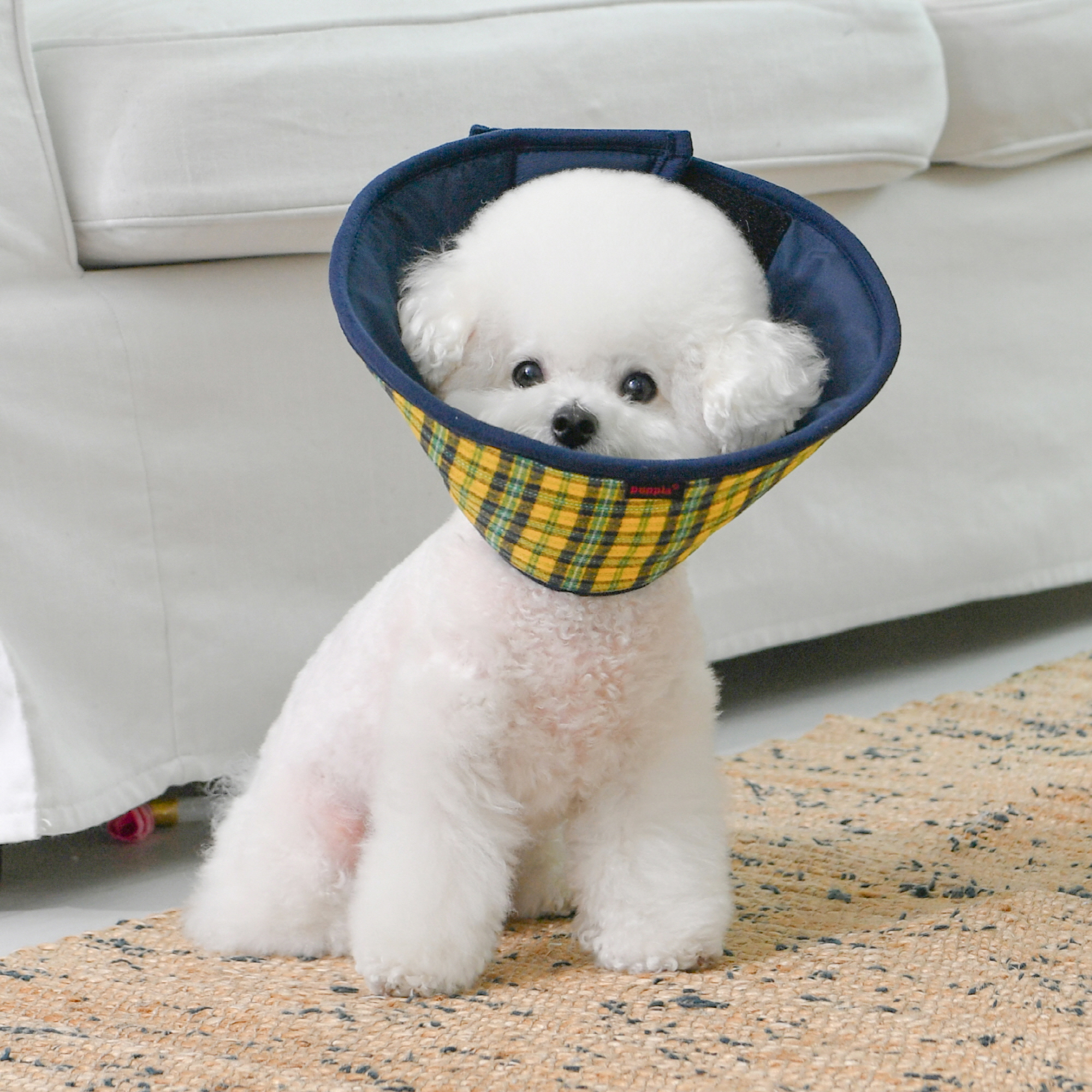 Collare elisabettiano con motivo a quadretti e tinta unita