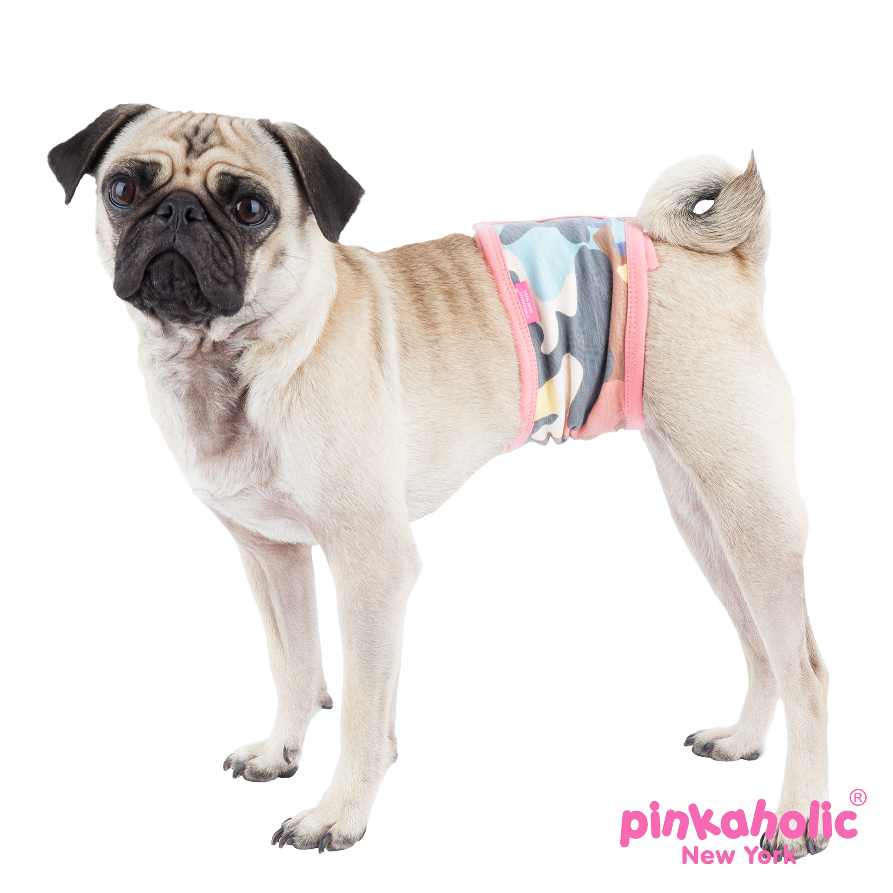 Fascia igienica pratica ed elegante, motivo Camouflage e tinta unita. Decorato con stemma Pinkaholic sul dorso, e con tasca interna per inserire pannolini usa e getta.
