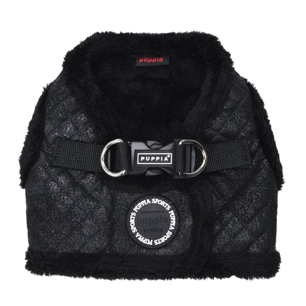 Pettorina invernale in pile modello B sicura e alla moda, motivo a rombi e tinta unita, chiusura con fibbia e velcro