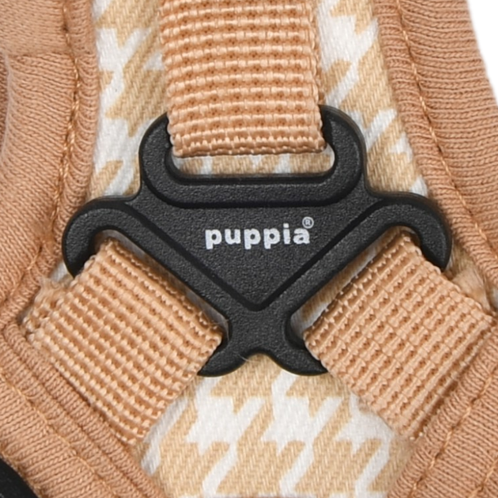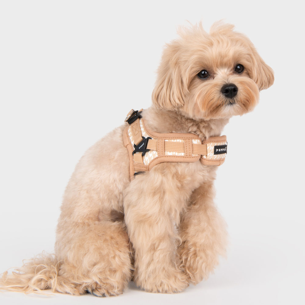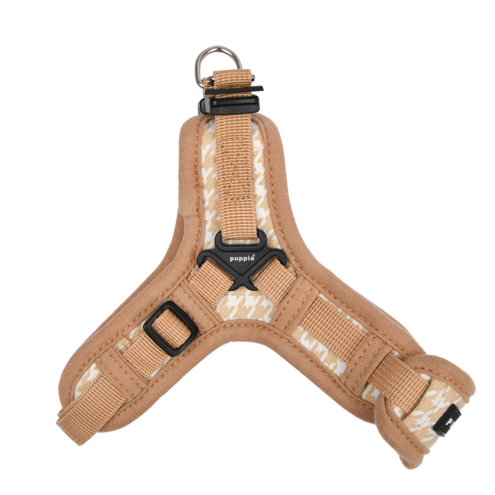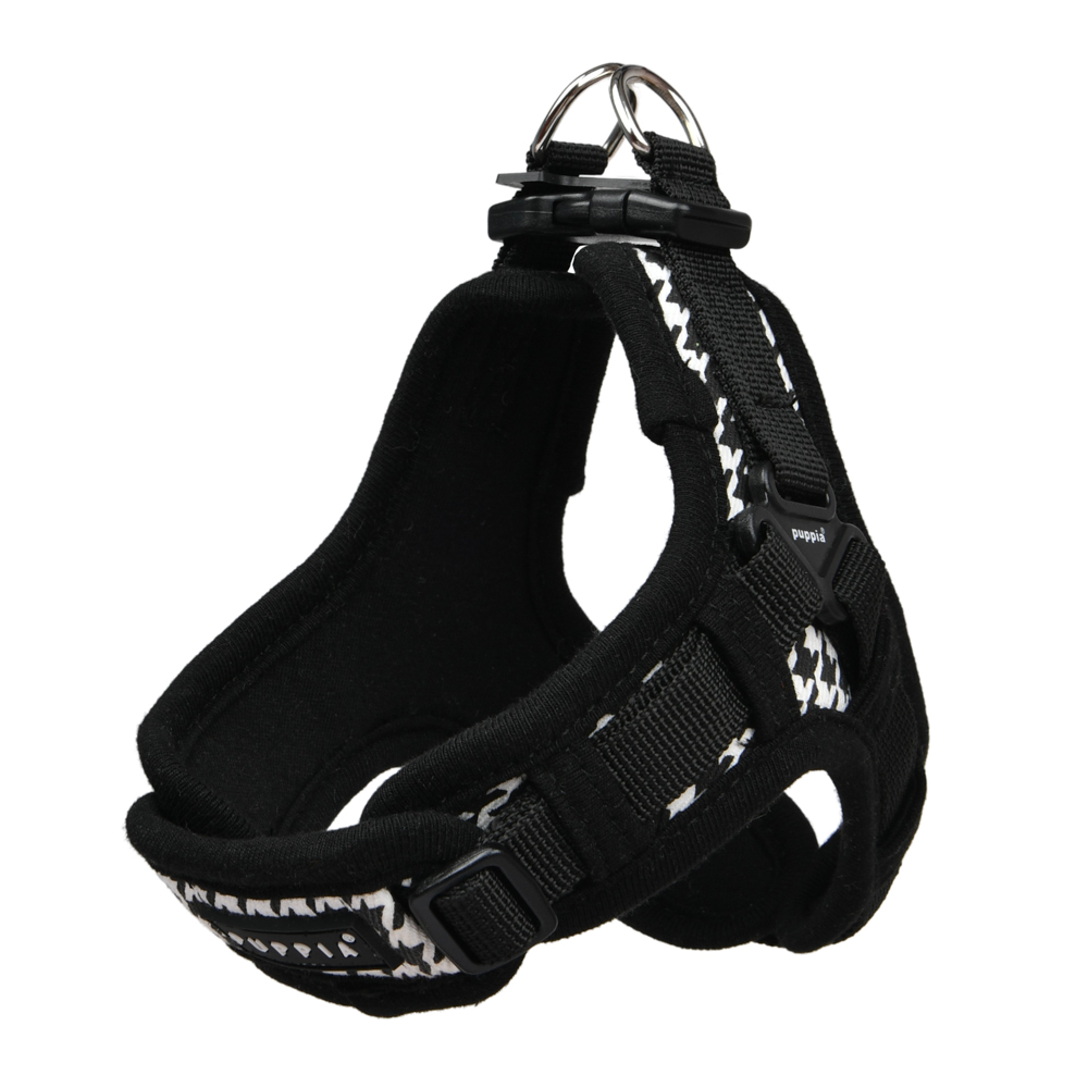 Pettorina modello X sicura e alla moda con motivo pied de poule, collo e cintura toracica regolabili e con targhetta SMART.