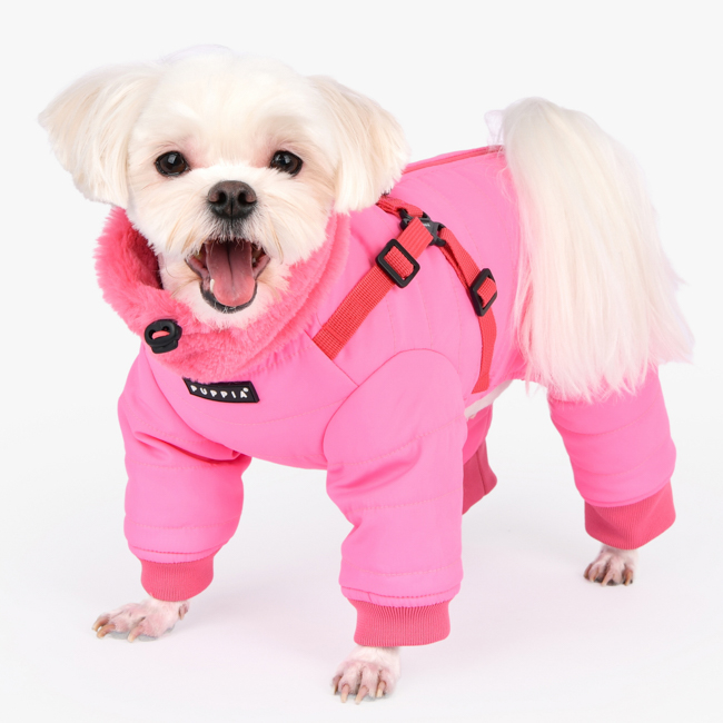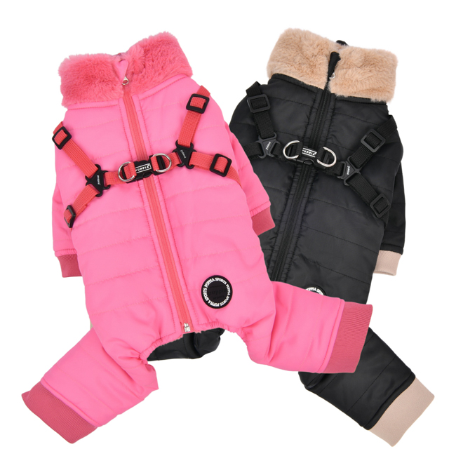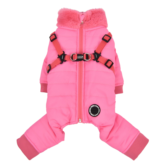 Tuta con cerniera e collo a lupetto, Decorata con rifiniture in pellicciotto sintetico, Collo regolabile con cordino elastico e fermo, Collo e petto regolabili con fibbia