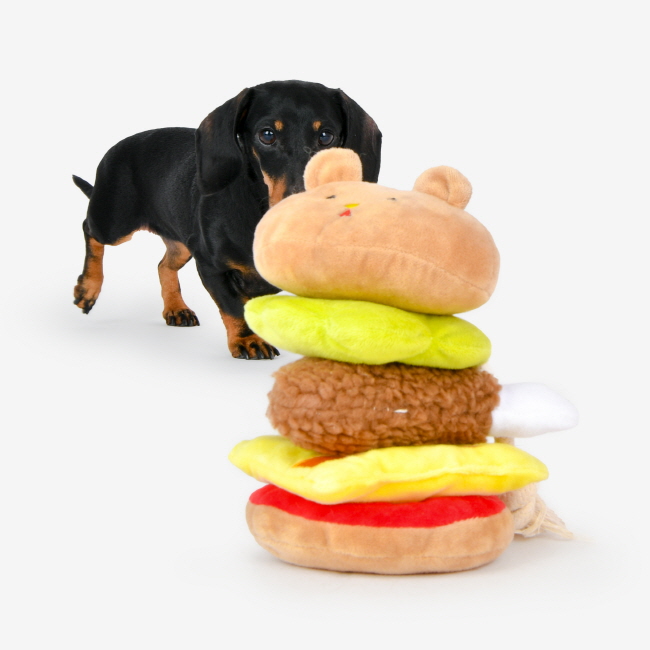 Simpatico gioco interattivo a forma di hamburger in poliestere 100%, in 5 parti separate
