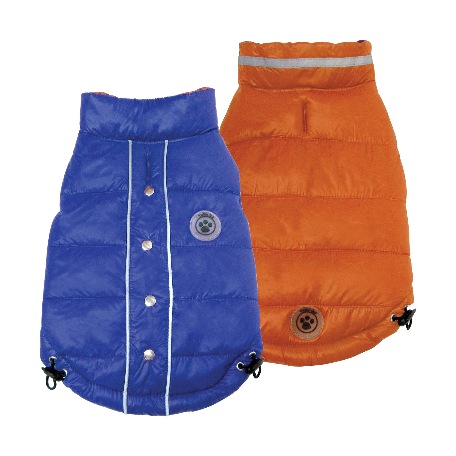 Fouski Parka – Fou-Ski Reversible Parka di FouFou Dog proteggerà il vostro cane dalle intemperie. Questa giacca imbottita alla moda 2-in-1 ha un rivestimento esterno resistente all’acqua per mantenere il vostro cane asciutto nei giorni umidi e freddi e per proteggere da pioggia e neve. Strcisce riflettenti di sicurezza contribuiscono a rendere il vostro cane visibile di notte. E’ completamente reversibile, in modo che abbia due freschi, eleganti look alla moda in uno! E’ anche senza maniche e facile da mettere e togliere, offrendo una maggiore mobilità per il vostro cane.