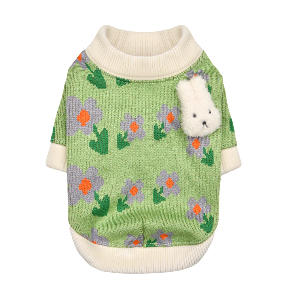 Maglia invernale con collo a lupetto, motivo floreale e tinta unita, decorata con coniglietto di peluche sul dorso
