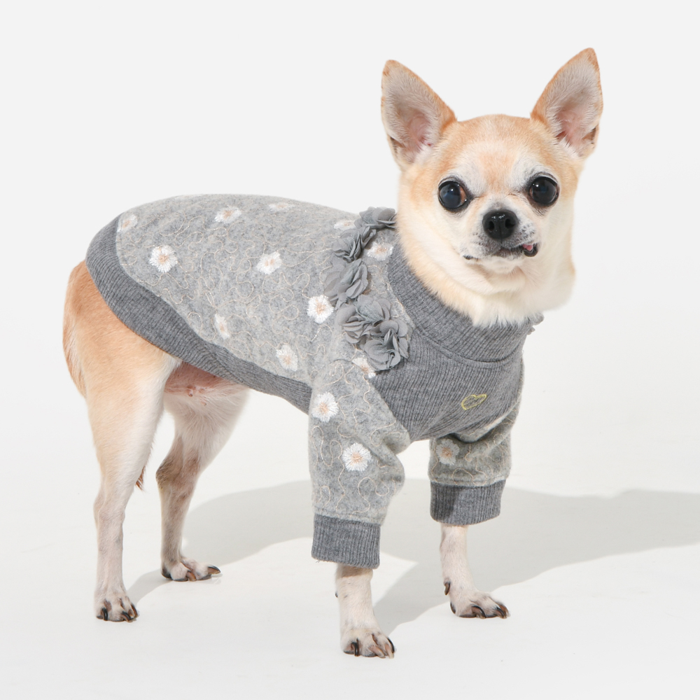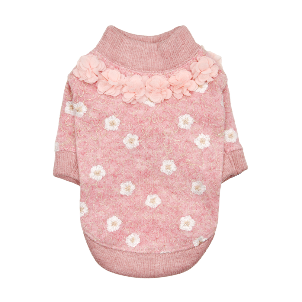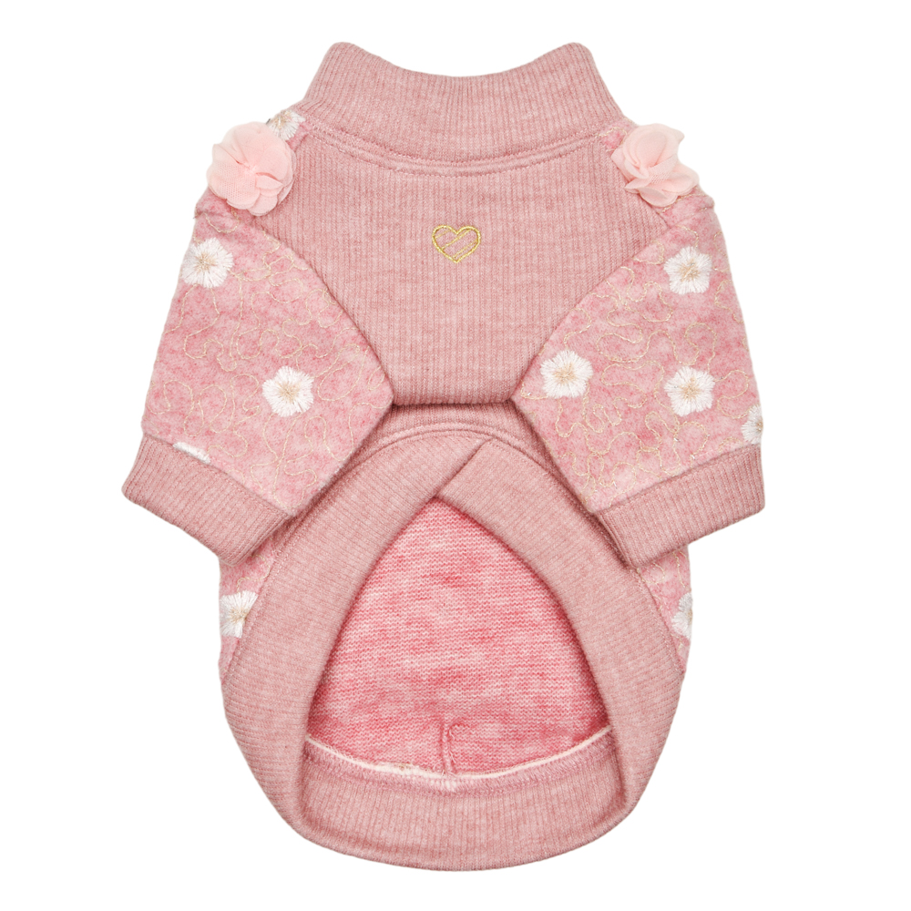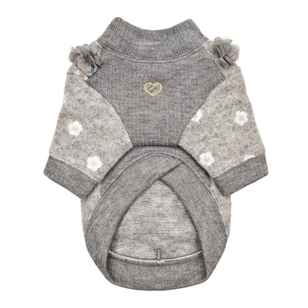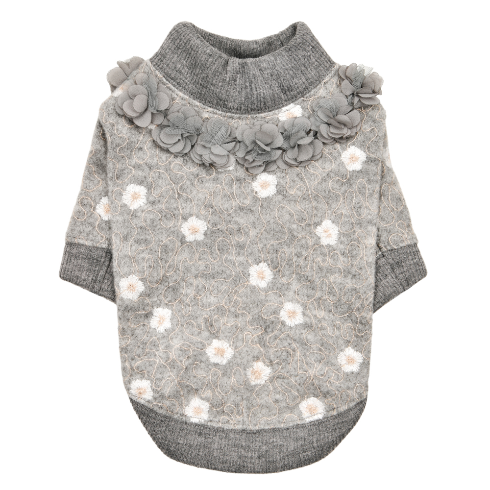 Maglia invernale con collo a lupetto, motivo floreale e tinta unita, decorata con pizzo floreale sul collo