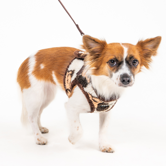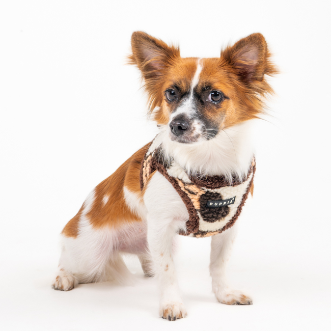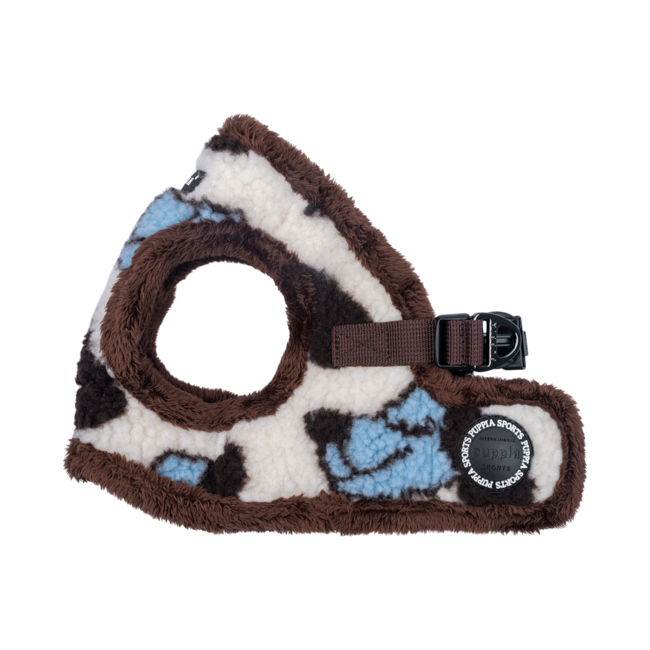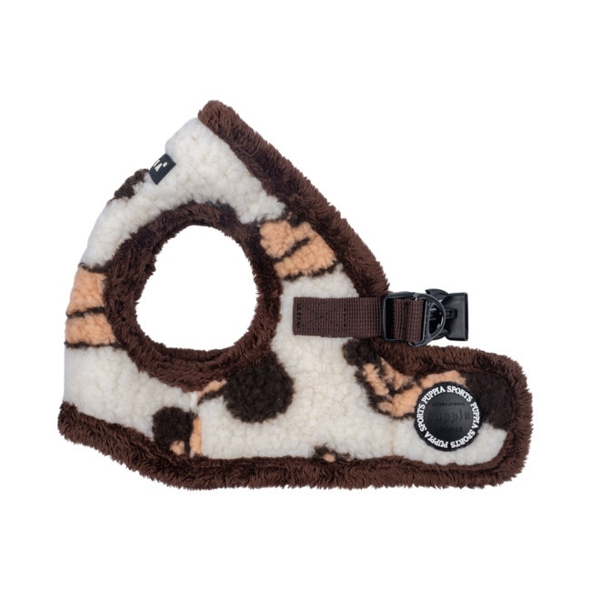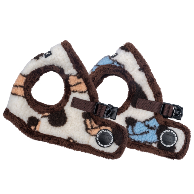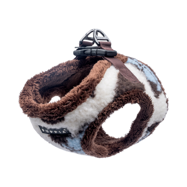 Pettorina sicura e alla moda invernale a sgancio rapido, modello B, motivo a cagnolini e tinta unita, chiusura con fibbia e velcro