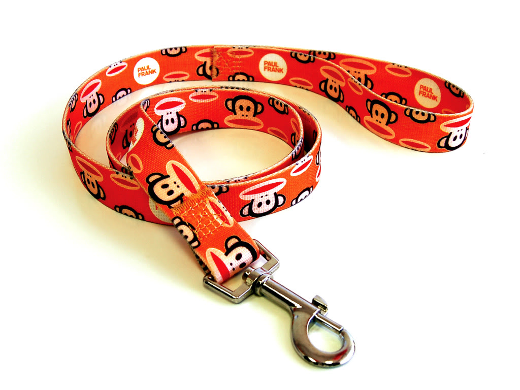 Esclusivi da 26 Bars & a Band, questa linea di guinzagli del designer Paul Frank corriposndono ai collari. Tutti fatti della stessa rete resistente, questi guinzagli hanno una robusta fibbia di metallo fermamente cucita, per attaccarli a un collare, rendendoli sicuri per il vostro animale domestico e sono di 5 piedi di lunghezza. La loro stampa elegante su entrambi i lati mostra il gusto divertente e cool per la moda di padrone e cane.