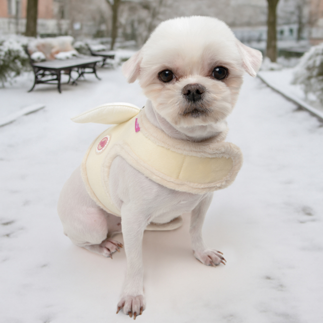 Pettorina invernale (pettorina J) sicura e alla moda, tinta unita, decorata con ali d’angelo sul dorso, chiusure a strappo per collo e petto