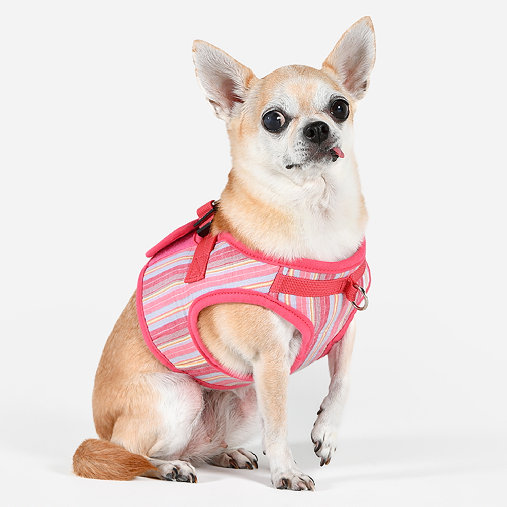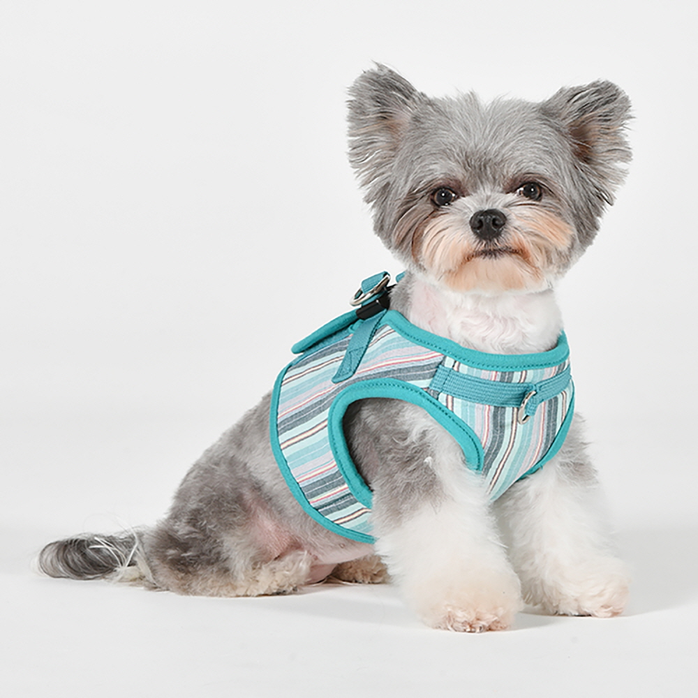 Pettorina modello B sicura e alla moda, anello a D anteriore per evitare che il cane tiri, motivo a righe e tinta unita, Fibbia e chiusura a strappo