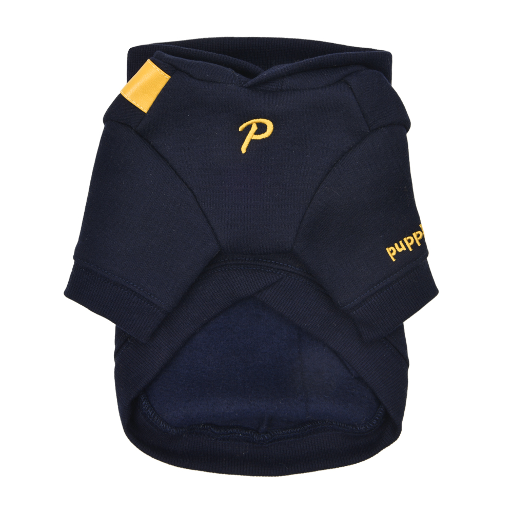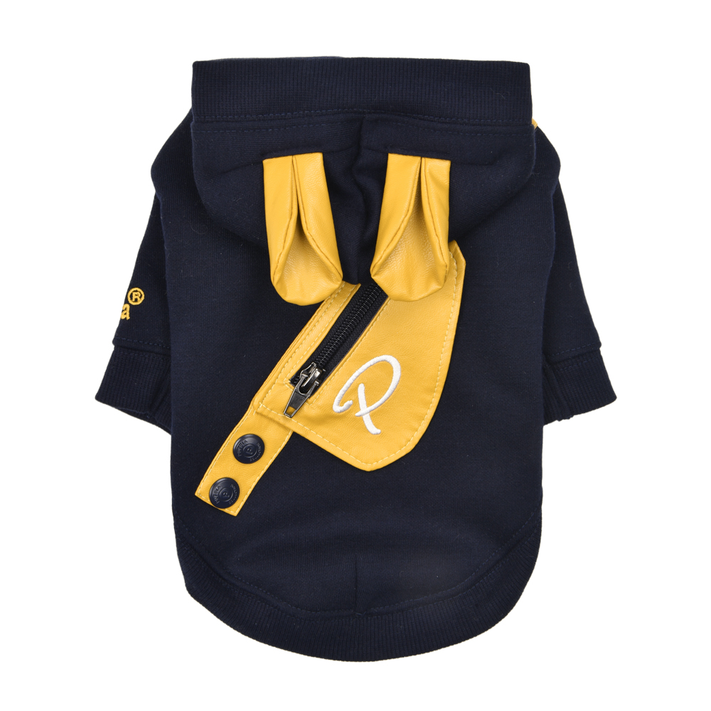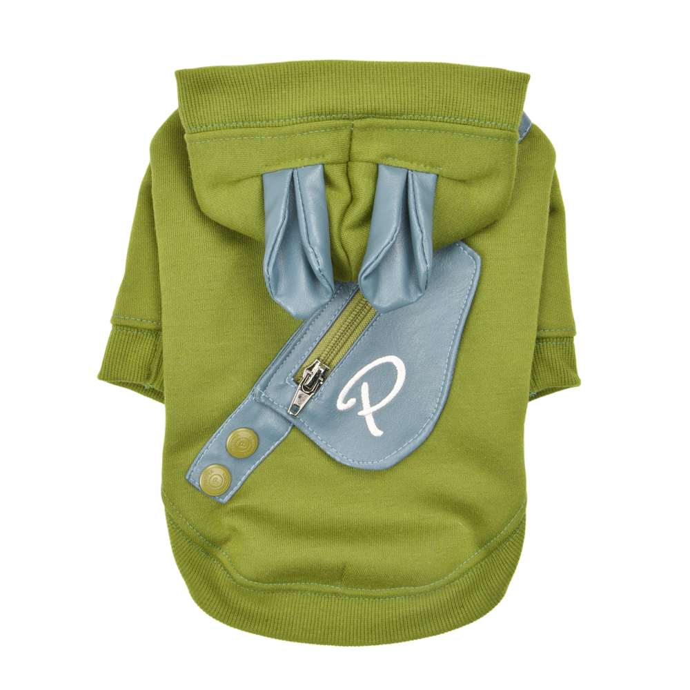 Maglia inverale morbida e calda, con cappuccio, decorata con tasca sul dorso