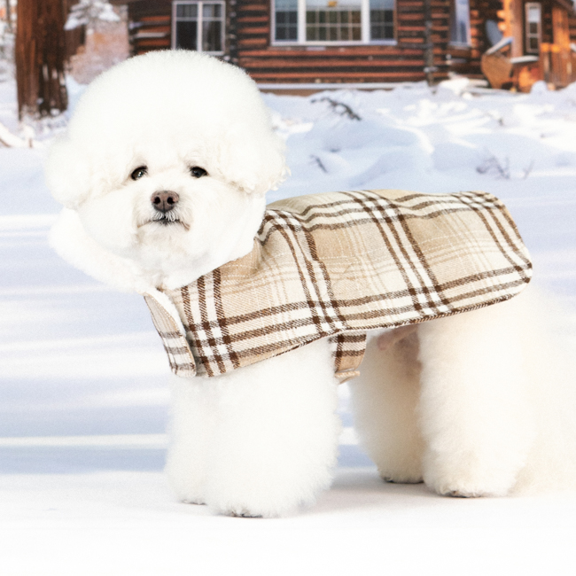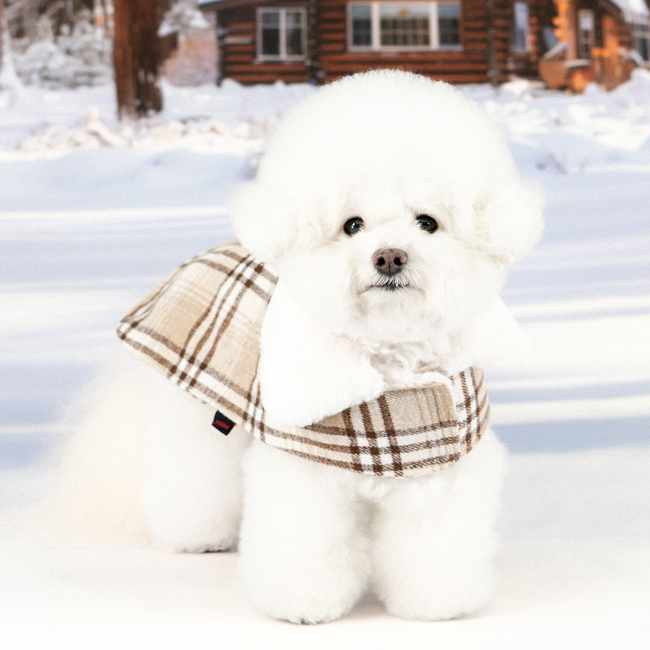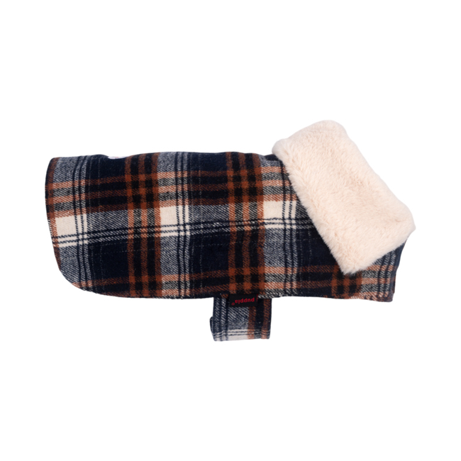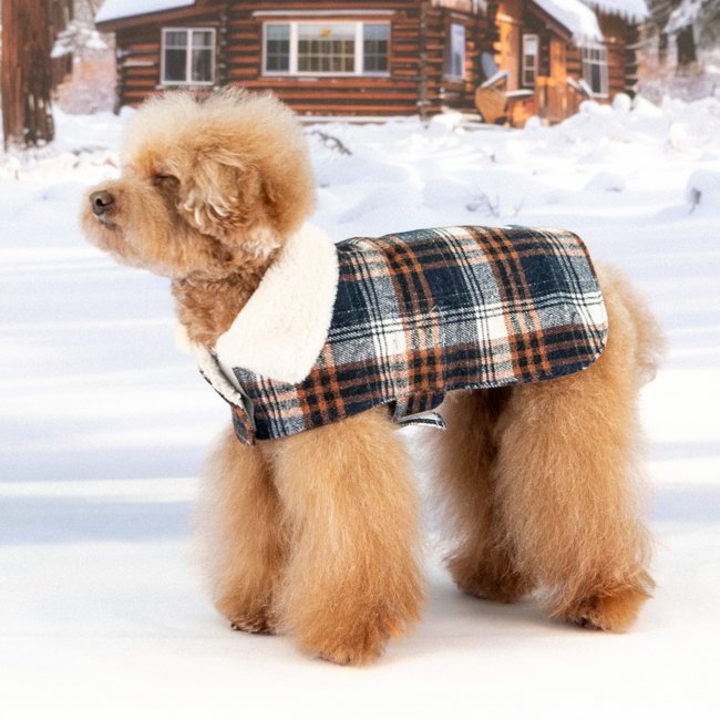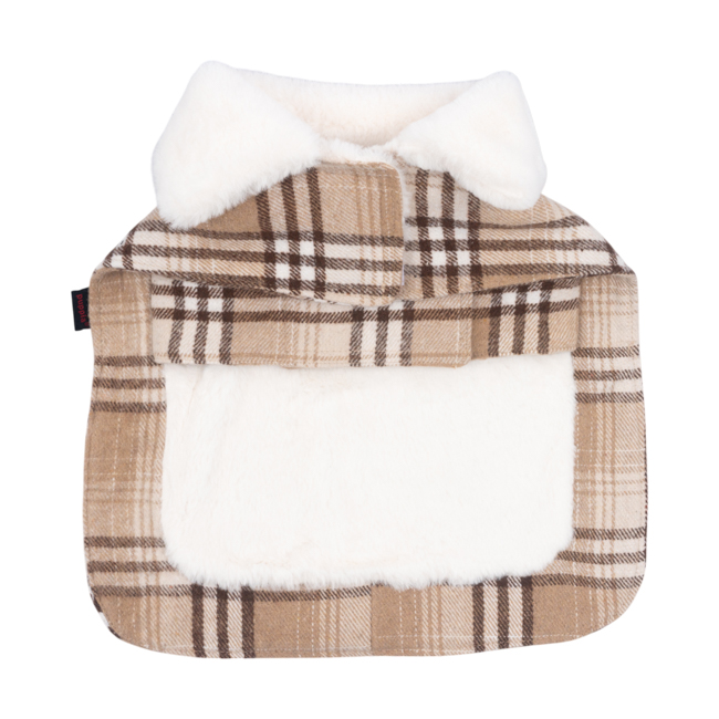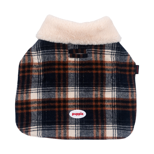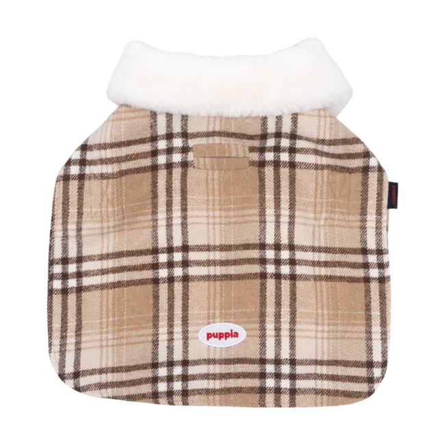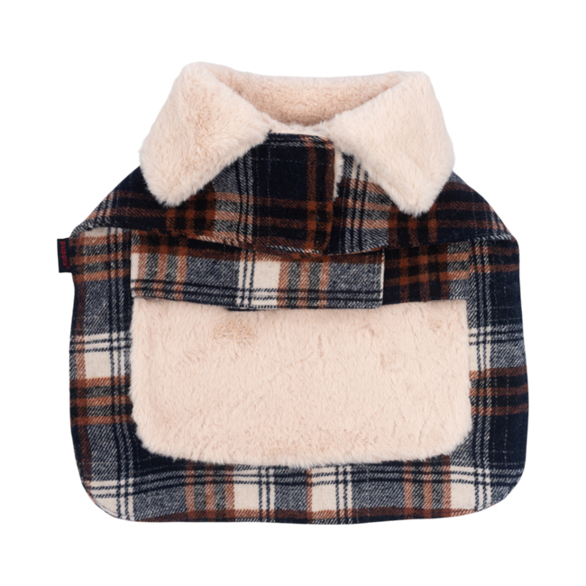 Mantella invernale in pile, motivo a quadri e tinta unita, chiusura a strappo su collo e petto